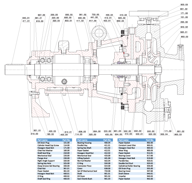 Radially split volute casing, Horizontal installation, Back pull-out design, Single stage, Single flow, Centerline supported pump casing, to API 610, 11th/ISO 13709, 2009