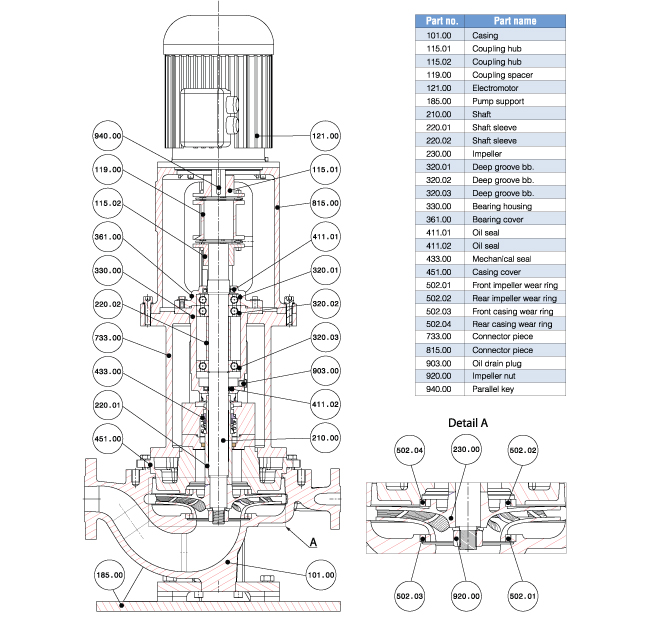 OH3 vertical in-line, single-stage, Semi-open & closed impellers, single suction, radially split centrifugal process pumps to API 610 (11th edition)