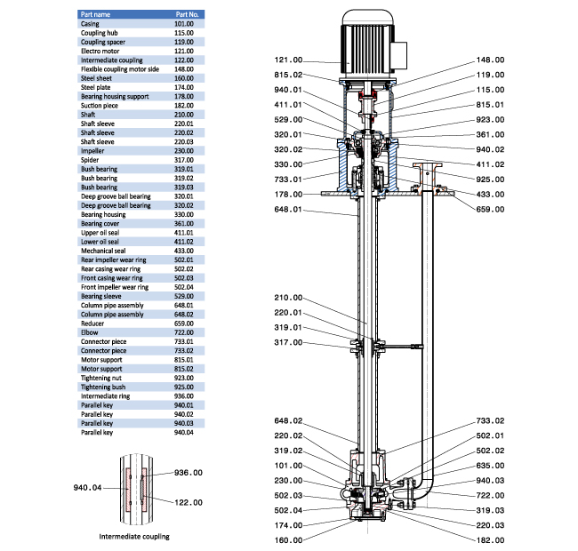 Vertical suspended, Line shaft, Single stage, Single flow, Radially split volute casing pump to API 610, 11th
